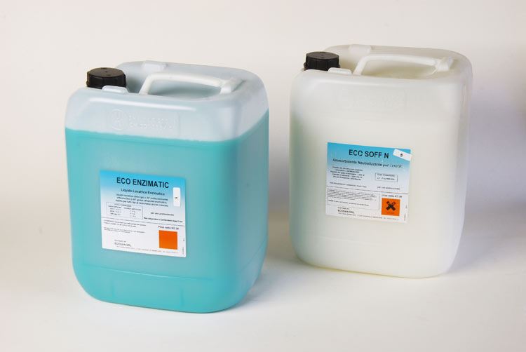 - Eco soff n, ammorbidente neutralizzante, tanica da kg. 25 - Eco 02, sbiancante a base di ossigeno, tanica da kg. 25 - Eco alcali, additivo alcalino, tanica da kg. 25